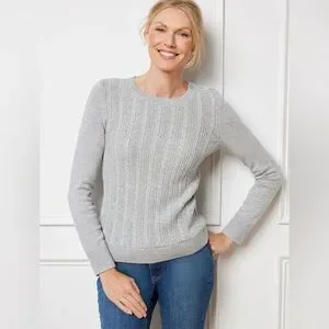 Talbots Plus Metallic Allover Cable Knit Crewneck Sweater