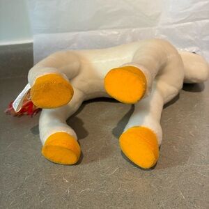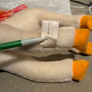 **I pointed out dirty spots on the extra tag. The hooves show some wear and spots. White fur looks pretty good for its age. Eyes have a few scratches. Legs show some wear when pulled.