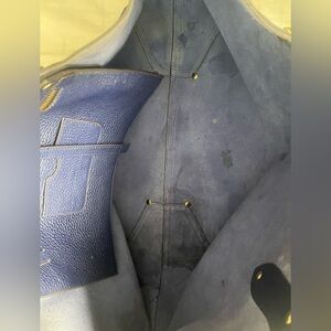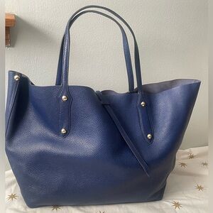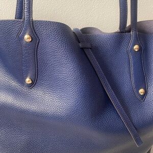 Large Annabel Ingall Blue Leather Tote Shoulder Bag Handbag