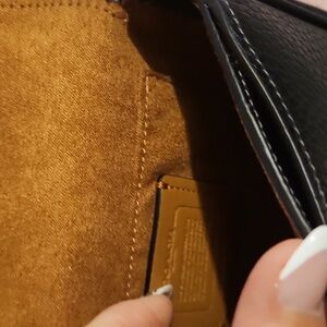 Stylish Coach crossbody bag in black pebbled leather. Features a sleek design with a secure buckle closure.