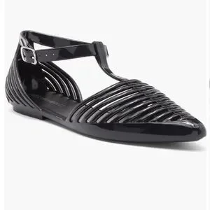 The late-'90s and early-Y2K era of jelly shoes returns with this revamped flat featuring cage-style cutouts and a refined pointy-toe silhouette.