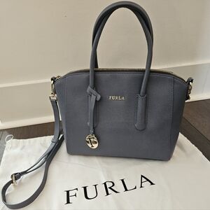 Furla 2-Way Steel Blue Leather Bag, Charm + Dustbag
