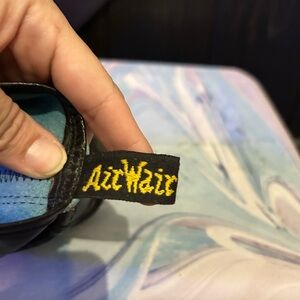 Authentic Dr. Martens 1460 boots in a striking oil slick iridescent leather finish. Lace-up style with iconic yellow stitching and bouncing soles. Marked UK size 5, fits Women’s US 8. Excellent pre-owned condition with minimal wear. Bold, unique Doc Martens style.