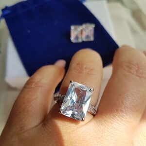 A very chic and elegant emerald-cut solitaire ring and matching stud earrings, made with Swarovski elements! Diamond shine! 6ct!!