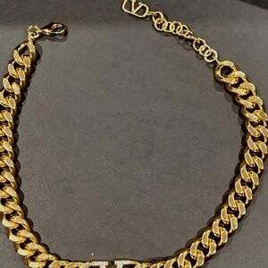 V Valentino Gold tone Cuban Choker Iconic “V” embedded w/clear Crystals