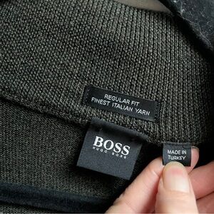 Hugo Boss Men's Olive Green Wool Zip up Sweater Sz M