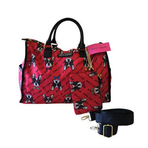 Betsey Johnson French Bulldog Weekender Duffel Travel Zip Carry-on Nylon Bag