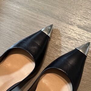 Chic black heels with sleek silver tips. Perfect for a night out.