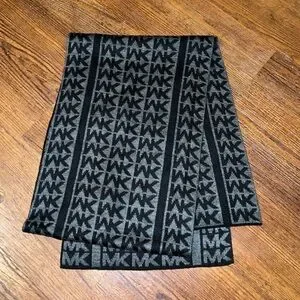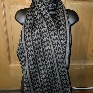 Michael Kors Black and Gray Classic Pattern Logo Acrylic Blend Scarf One Size