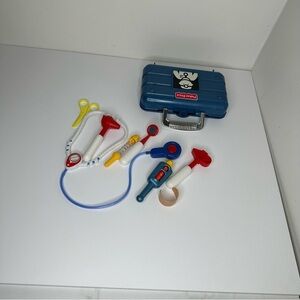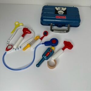 Vintage Fisher Price Blue Doctor Case Medical Kit w Accessories Kids Pretend Toy