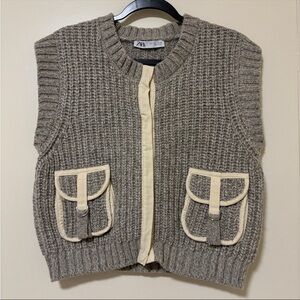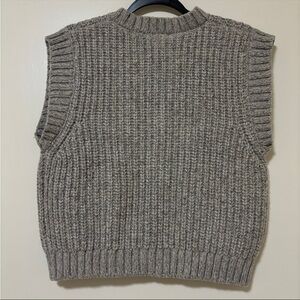 gray button ( snaps)down sweater vest from Zara in a women's size large! It can be worn for either an oversized look or layered on top of a long sleeve, perfect for fall! Item is in good condition with no signs of wear or tear. Original retail $60.