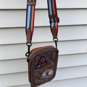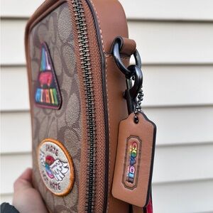 Coach CJ671 LGBTQ Stanton Crossbody Bad with leather logo patches, Pride Edition
