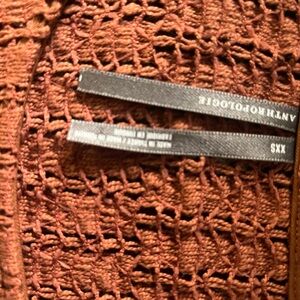 Anthropologie Rust Open Knit Sweater Dress Fringe Hem XXS