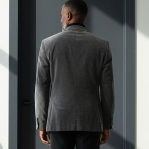■Elevate your style with this classic gray velvet stretch blazer. Perfect for formal occasions or a sophisticated night out.