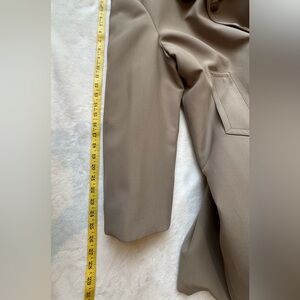 The outer shell is made of 100% textured polyester (dry clean only), with a sleek satin-lined interior and a rear vent for ease of movement. The coat is in excellent vintage condition, with no rips, stains, or significant wear—ready to elevate your wardrobe with iconic American style.