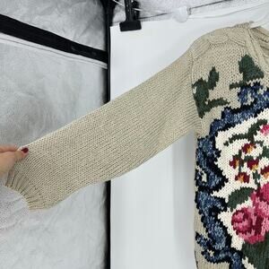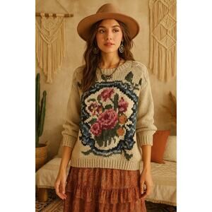 Vintage One Step Up Womens Chunky Sweater Size M Hand Knit Floral Graphic Boho