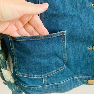 Tantrums Womens Denim Jacket Medium Floral Embroidered Jean Coat