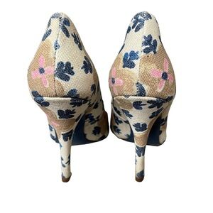 Tory Burch canvas pumps in cream with blue and beige flowers, leather toe. These are a rare Tory Burch find in very good condition! Normal signs of use on sole