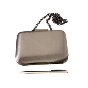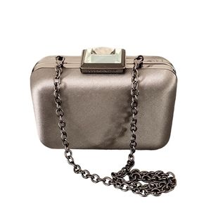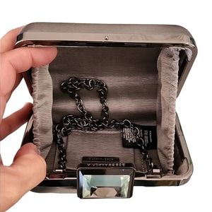 BCBG MAXAZRIA Mini Clamshell Convertible Clutch Bag Purse Metallic Chain Strap