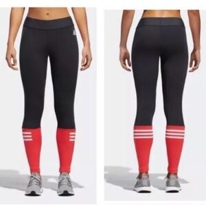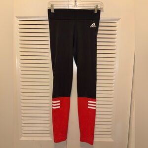 Stylish adidas leggings. Black with red accents. Comfortable fit.