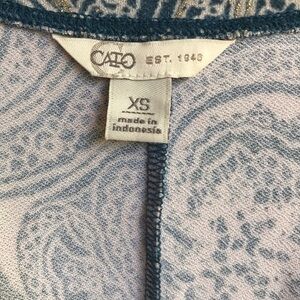 Cato | Women’s XS | Aqua Blue Cream Gold Shimmer Paisley Cold Shoulder Flowy Top