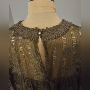 Est. 1946 NWOT Army Green Floral Lace Flowy Tunic Plus Size New without Tags. This will be the cutest with some jeans and high boots or ankle boots.