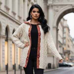 Yorkshire Knitting Company Vintage Cardigan Ecru & Red Embellishment Size Med.