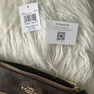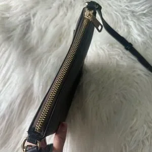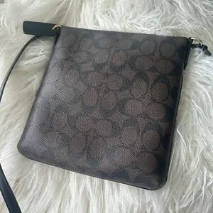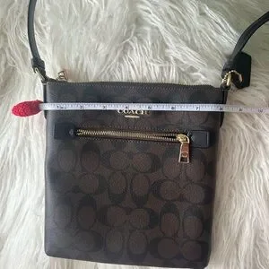 New and never used but tags aren’t attached. Elegant Coach crossbody bag in dark brown. Features gold-tone hardware and a front zipper pocket. A classic staple.