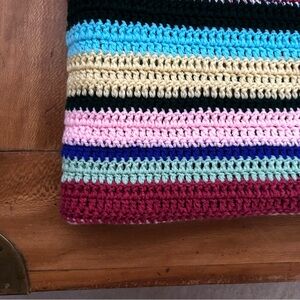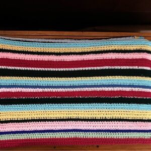 Vintage Handmade Multi Colour Stripe Afghan Throw Blanket