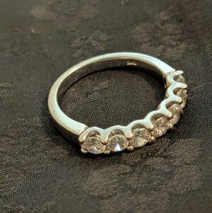 Marked 925 sterling with clear stones. Size 5.