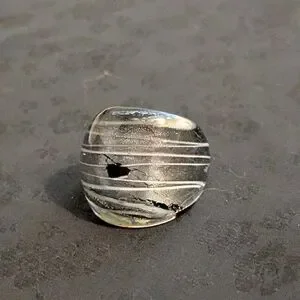 Murano Glass Ring Silver Foil Glass Ring Size 7.5