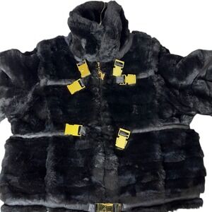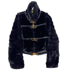 Vintage Baby Phat Y2k Faux Fur Coat Jacket Rare Gold Logo Women's Cropped Large