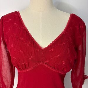 Vtg Rampage Y2K Red Babydoll Midi Dress Sz 4 Fairy Sheer Asymmetrical Whimsi