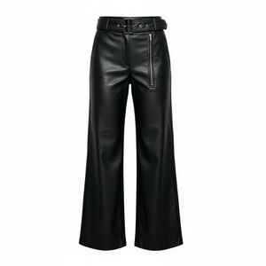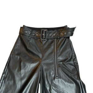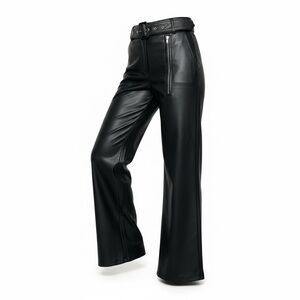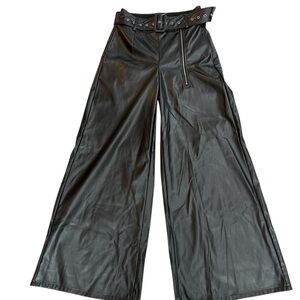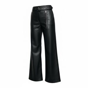 Elevate your style with these chic black wide leg leather pants. Perfect for any occasion, they offer a sleek and modern look.