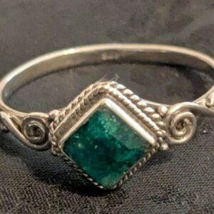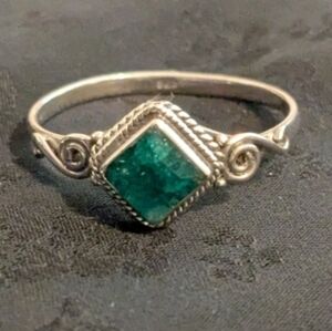 🆕 925 Solid Sterling Silver Ring Genuine Natural Emerald Ring Size 13