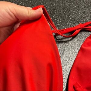 Vibrant red bikini top. Triangle style. Adjustable ties.