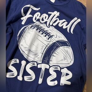 This stylish blue 'Football Sister' t-shirt is perfect for sports fans. Comfortable and trendy, it's a great addition to any wardrobe. Navy and white.