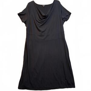 Talbots Woman 1X Black Cowl Neck Empire Waist Short Sleeve Midi Dress LBD