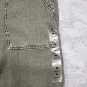 American Eagle Pants Womens 16 Green Linen Blend Straight Leg Lightweight NWT