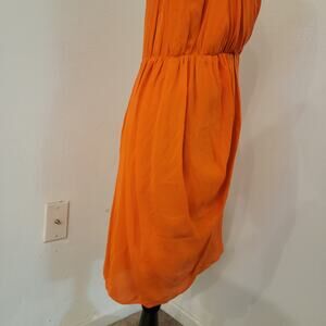 Alice + Olivia Cynthia Draped Tulip Skirt Dress Sunset Orange 100% Silk Large