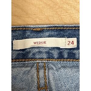 Levi's Wedgie Women's Blue Mid Rise Frayed Raw Hem Skinny Denim Jeans Pants 24