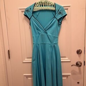 VintagePinup Couture Blue Rockabilly Dress M Cotton/SPANDEX lots of Stretch!