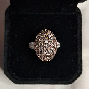 Stunning Premium Natural Jenipapo Andalusite and Natural White Zircon Cluster Style Cocktail Ring. In 14kt Rose Gold Vermeil Over 925 Sterling Silver.