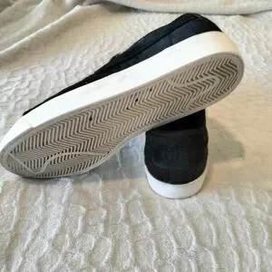 In like new condition I have a Nike Blazers Low Lux. In women's size 6 and the sneakers are in a color black. The Blazers have a texture of a horse pony material in color black.
