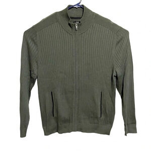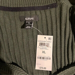 NWT ALFANI Men's Full Zip Up Ribbed Nordic Forest Green Sweater Cardigan Size XL