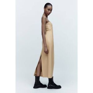 ZARA CREAM FAUX LEATHER MIDI DRESS