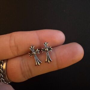 Chrome Hearts Style - Cross Earring - Sterling Silver - Silicone Clasp