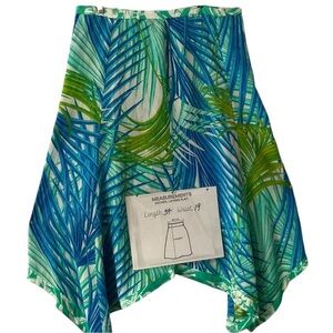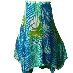 New York & Company Skirt Midi Floral Blue Green Beach Topical Asymmetric SZ XL