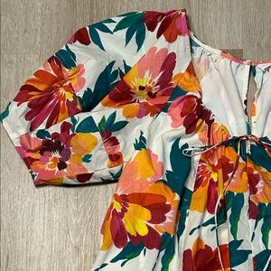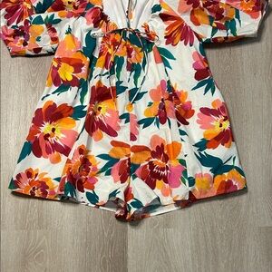 NWOT Peach Love California Oversized Puffed Sleeve Floral Multicolor Romper