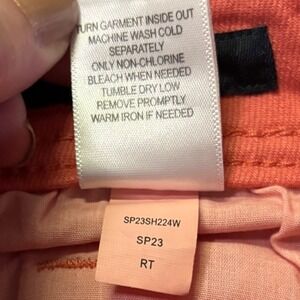 Keywords: Flag & Anthem, denim shorts, high rise, cuffed hem, coral pink, casual shorts, summer shorts, women's shorts, size 4, size 27, five pocket, pink shorts, new with tags